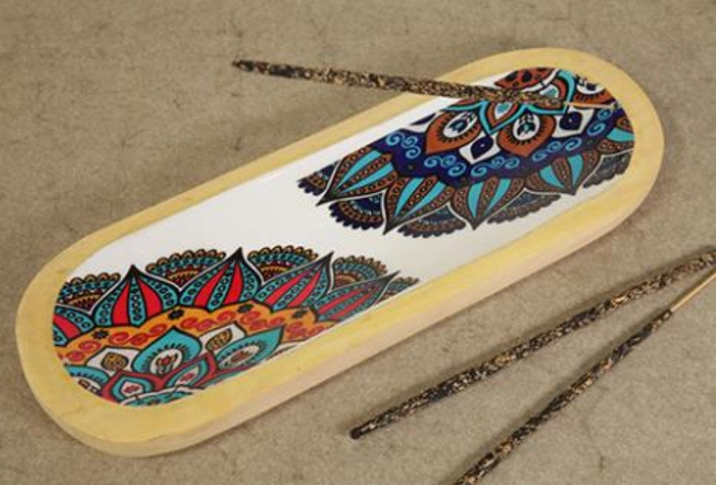 INCENSARIO ANCHO DE MADERA PARA 2 VARILLAS. DECORACION MANDALA 10X2.5X29 CM.